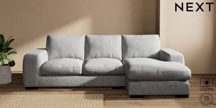 7.2.10 Houghton Deep Relaxed Sit Medium Sofa Chaise - Right Hand Chunky Boucle Easy Clean Light Grey Large Square Angle - Dark | Made Click here to use our website with more accessibility support, for example screen readers