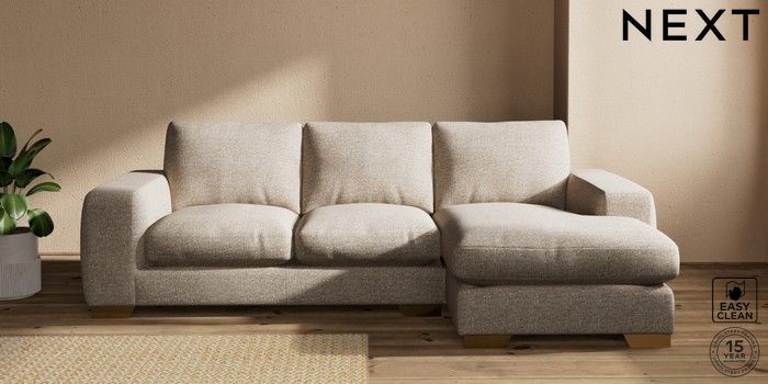 7.2.10 Houghton Deep Relaxed Sit Medium Sofa Chaise - Right Hand Chunky Boucle Easy Clean Mid Natural Large Square Angle - Brushed Brass | Made Click here to use our website with more accessibility support, for example screen readers