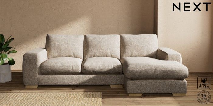 7.2.10 Houghton Deep Relaxed Sit Medium Sofa Chaise - Right Hand Chunky Boucle Easy Clean Mid Natural Large Square Angle - Light | Made Click here to use our website with more accessibility support, for example screen readers