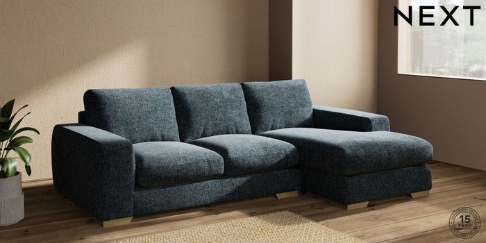 7.2.10 Houghton Deep Relaxed Sit Medium Sofa Chaise - Right Hand Chunky Chenille Dark Navy Blue Large Square Angle - Light | Made Click here to use our website with more accessibility support, for example screen readers