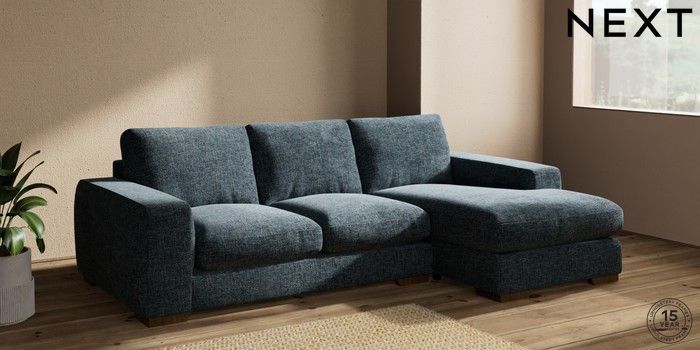 7.2.10 Houghton Deep Relaxed Sit Medium Sofa Chaise - Right Hand Chunky Chenille Dark Navy Blue Large Square Angle - Mid | Made Click here to use our website with more accessibility support, for example screen readers