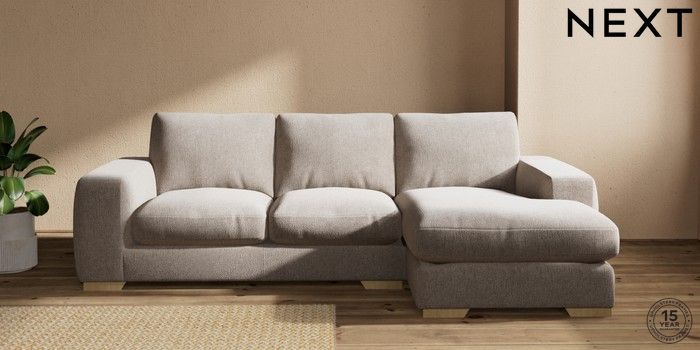 7.2.10 Houghton Deep Relaxed Sit Medium Sofa Chaise - Right Hand Chunky Chenille Light Dove Large Square Angle - Light | Made Click here to use our website with more accessibility support, for example screen readers
