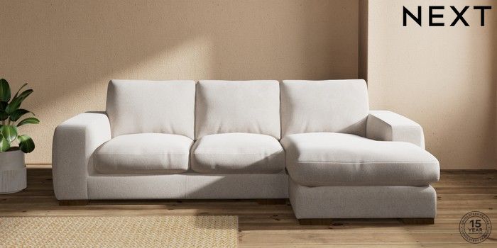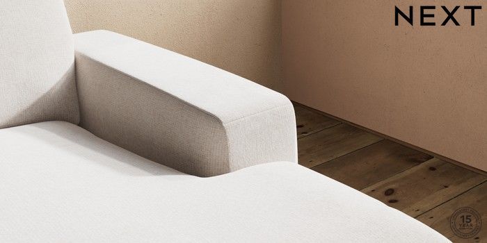 7.2.10 Houghton Deep Relaxed Sit Medium Sofa Chaise - Right Hand Chunky Chenille Oyster Large Square Angle - Mid | Made Click here to use our website with more accessibility support, for example screen readers