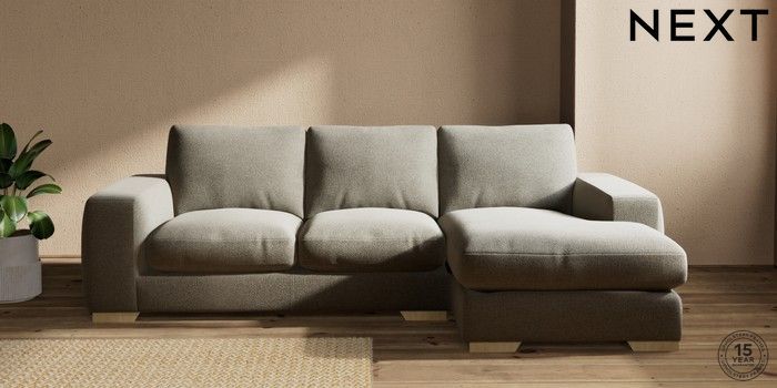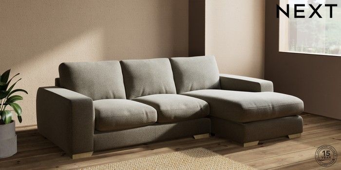 7.2.10 Houghton Deep Relaxed Sit Medium Sofa Chaise - Right Hand Chunky Marl Light Olive Green Large Square Angle - Light | Made Click here to use our website with more accessibility support, for example screen readers