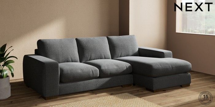 7.2.10 Houghton Deep Relaxed Sit Medium Sofa Chaise - Right Hand Chunky Texture Dark Grey Large Square Angle - Mid | Made Click here to use our website with more accessibility support, for example screen readers