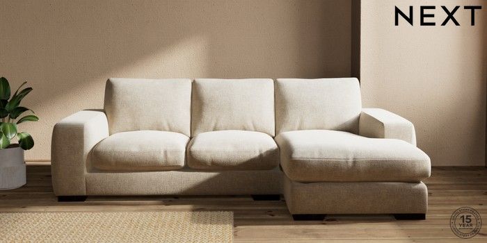 7.2.10 Houghton Deep Relaxed Sit Medium Sofa Chaise - Right Hand Chunky Weave Cream Large Square Angle - Dark | Made Click here to use our website with more accessibility support, for example screen readers