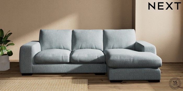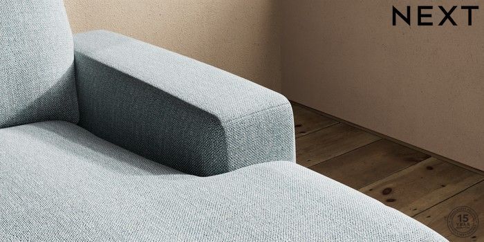 7.2.10 Houghton Deep Relaxed Sit Medium Sofa Chaise - Right Hand Chunky Weave Mid Blue Large Square Angle - Dark | Made Click here to use our website with more accessibility support, for example screen readers