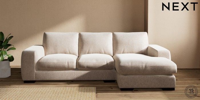 7.2.10 Houghton Deep Relaxed Sit Medium Sofa Chaise - Right Hand Cotswold Chenille Light Natural Large Square Angle - Dark | Made Click here to use our website with more accessibility support, for example screen readers