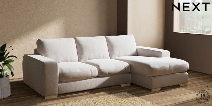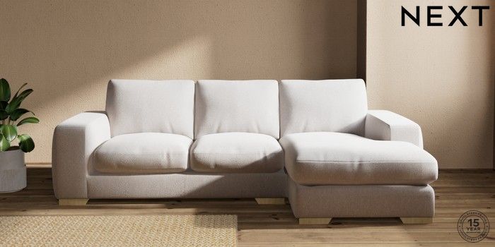 7.2.10 Houghton Deep Relaxed Sit Medium Sofa Chaise - Right Hand Cotswold Chenille Oyster Large Square Angle - Light | Made Click here to use our website with more accessibility support, for example screen readers