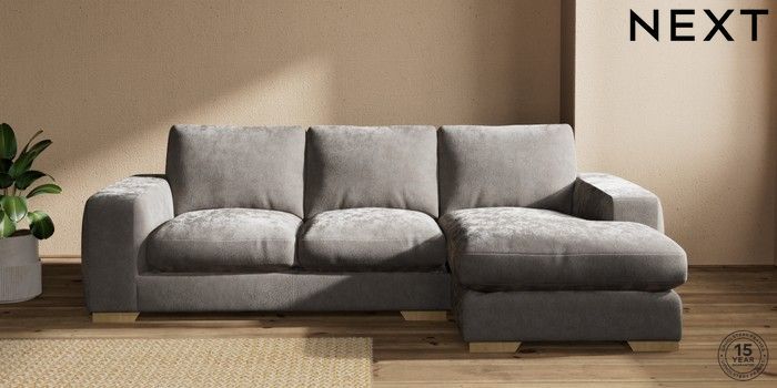 7.2.10 Houghton Deep Relaxed Sit Medium Sofa Chaise - Right Hand Distressed Velour French Grey Large Square Angle - Light | Made Click here to use our website with more accessibility support, for example screen readers