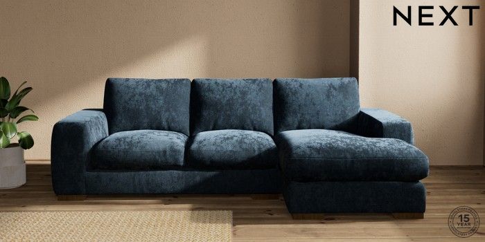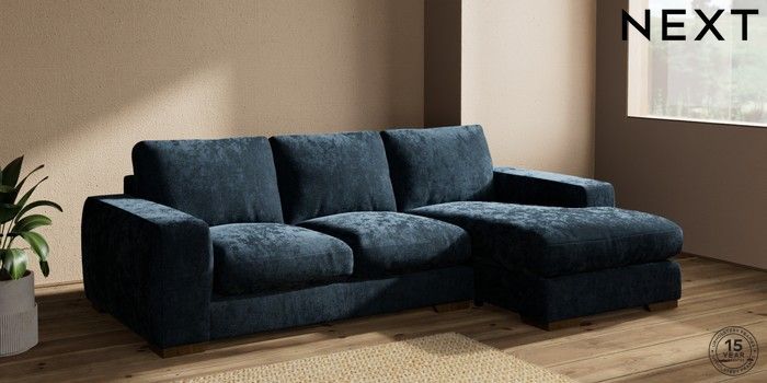 7.2.10 Houghton Deep Relaxed Sit Medium Sofa Chaise - Right Hand Distressed Velour Midnight Blue Large Square Angle - Mid | Made Click here to use our website with more accessibility support, for example screen readers