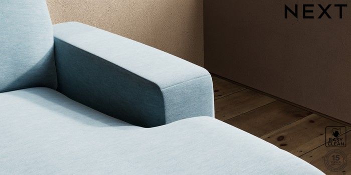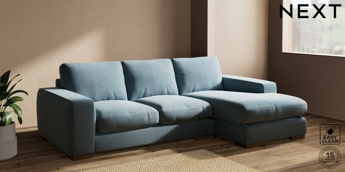 7.2.10 Houghton Deep Relaxed Sit Medium Sofa Chaise - Right Hand Fine Chenille Easy Clean Mid Blue Large Square Angle - Mid | Made Click here to use our website with more accessibility support, for example screen readers
