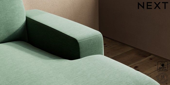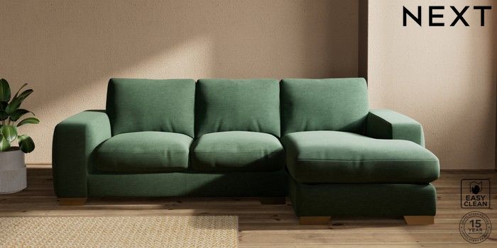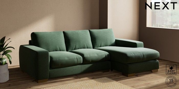 7.2.10 Houghton Deep Relaxed Sit Medium Sofa Chaise - Right Hand Fine Chenille Easy Clean Mid Khaki Green Large Square Angle - Brushed Brass | Made Click here to use our website with more accessibility support, for example screen readers