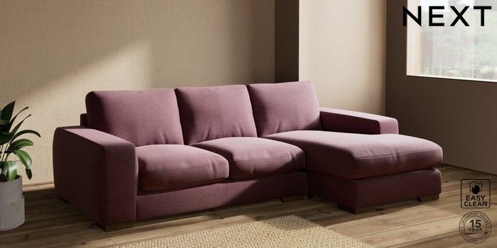7.2.10 Houghton Deep Relaxed Sit Medium Sofa Chaise - Right Hand Fine Chenille Easy Clean Mid Mulberry Purple Large Square Angle - Mid | Made Click here to use our website with more accessibility support, for example screen readers