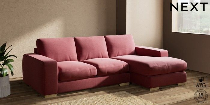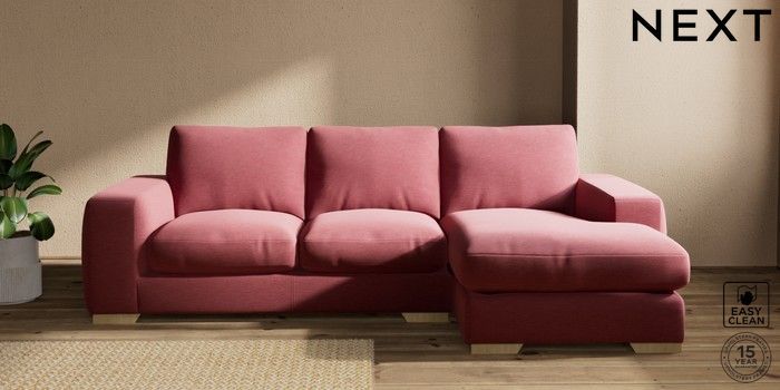 7.2.10 Houghton Deep Relaxed Sit Medium Sofa Chaise - Right Hand Fine Chenille Easy Clean Mid Pink Large Square Angle - Light | Made Click here to use our website with more accessibility support, for example screen readers