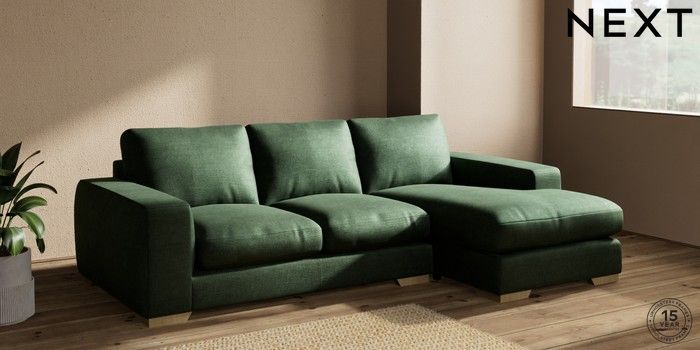7.2.10 Houghton Deep Relaxed Sit Medium Sofa Chaise - Right Hand Luxe Chenille Dark Green Large Square Angle - Light | Made Click here to use our website with more accessibility support, for example screen readers