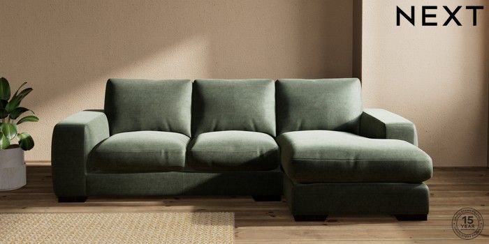 7.2.10 Houghton Deep Relaxed Sit Medium Sofa Chaise - Right Hand Luxe Chenille Mid Green Large Square Angle - Dark | Made Click here to use our website with more accessibility support, for example screen readers