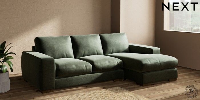 7.2.10 Houghton Deep Relaxed Sit Medium Sofa Chaise - Right Hand Luxe Chenille Mid Green Large Square Angle - Mid | Made Click here to use our website with more accessibility support, for example screen readers