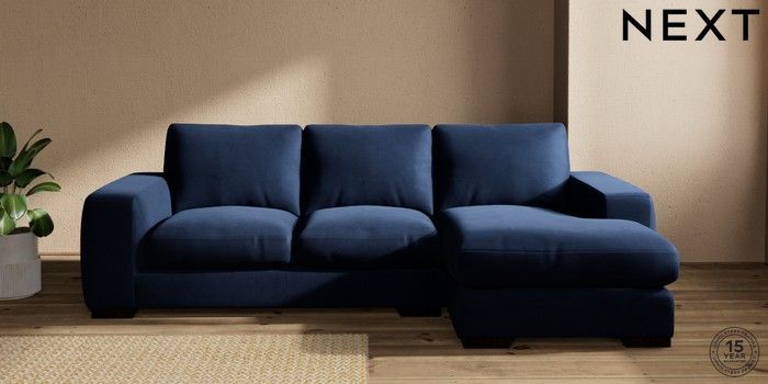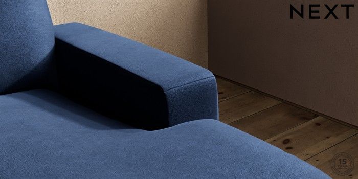 7.2.10 Houghton Deep Relaxed Sit Medium Sofa Chaise - Right Hand Luxe Chenille Navy Blue Large Square Angle - Dark | Made Click here to use our website with more accessibility support, for example screen readers