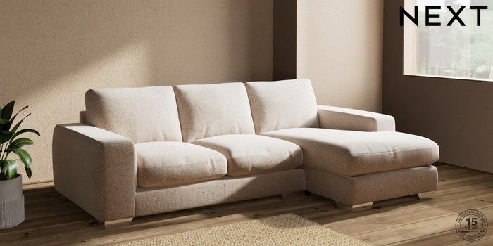7.2.10 Houghton Deep Relaxed Sit Medium Sofa Chaise - Right Hand Multi Weave Mid Natural Large Square Angle - Chrome Metal | Made Click here to use our website with more accessibility support, for example screen readers