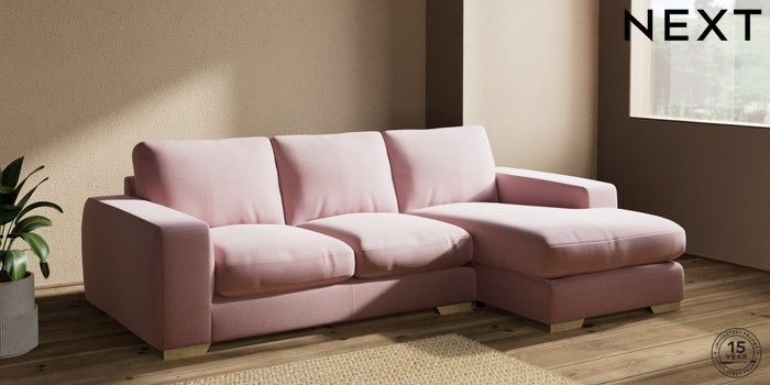 7.2.10 Houghton Deep Relaxed Sit Medium Sofa Chaise - Right Hand Natural Mix Light Rose Pink Large Square Angle - Light | Made Click here to use our website with more accessibility support, for example screen readers