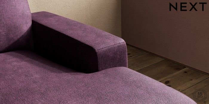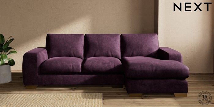 7.2.10 Houghton Deep Relaxed Sit Medium Sofa Chaise - Right Hand Plush Chenille Dark Plum Purple Large Square Angle - Brushed Brass | Made Click here to use our website with more accessibility support, for example screen readers