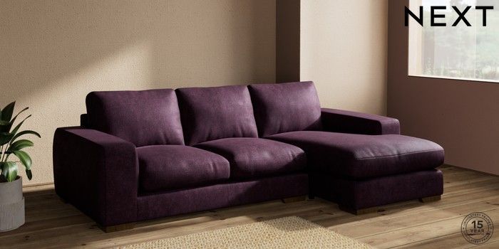 7.2.10 Houghton Deep Relaxed Sit Medium Sofa Chaise - Right Hand Plush Chenille Dark Plum Purple Large Square Angle - Mid | Made Click here to use our website with more accessibility support, for example screen readers