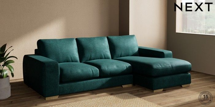7.2.10 Houghton Deep Relaxed Sit Medium Sofa Chaise - Right Hand Plush Chenille Dark Teal Green Large Square Angle - Light | Made Click here to use our website with more accessibility support, for example screen readers