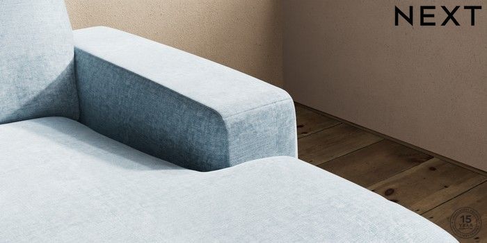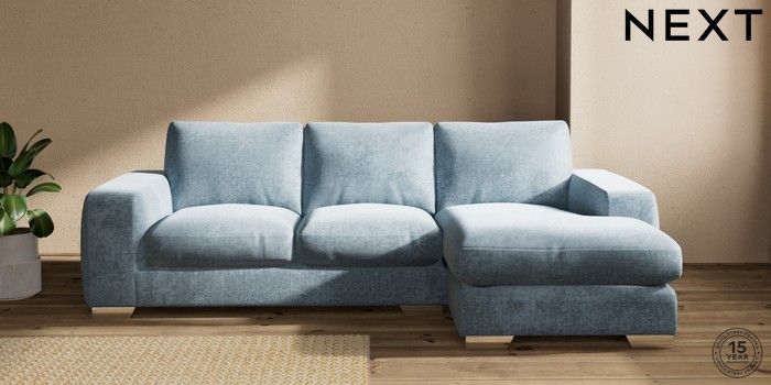 7.2.10 Houghton Deep Relaxed Sit Medium Sofa Chaise - Right Hand Plush Chenille Light Blue Large Square Angle - Chrome Metal | Made Click here to use our website with more accessibility support, for example screen readers