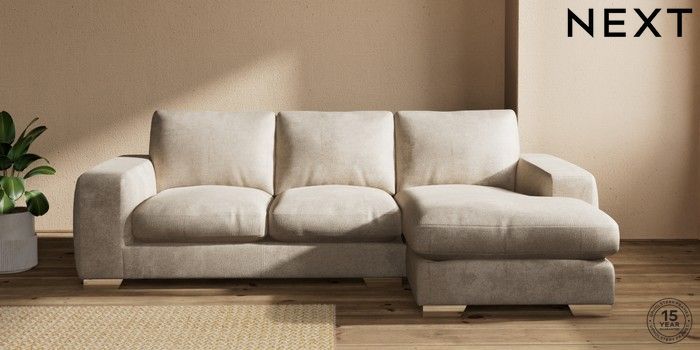 7.2.10 Houghton Deep Relaxed Sit Medium Sofa Chaise - Right Hand Plush Chenille Light Natural Large Square Angle - Chrome Metal | Made Click here to use our website with more accessibility support, for example screen readers