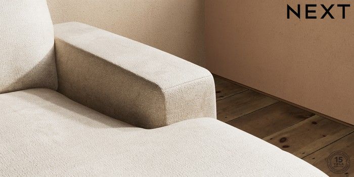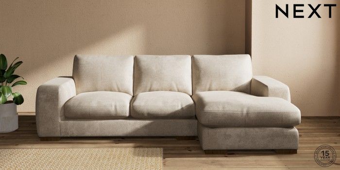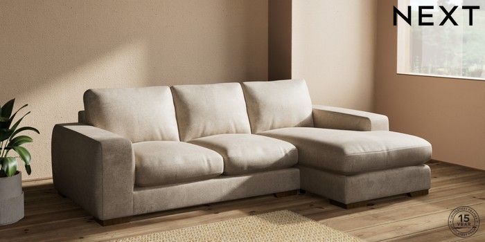 7.2.10 Houghton Deep Relaxed Sit Medium Sofa Chaise - Right Hand Plush Chenille Light Natural Large Square Angle - Mid | Made Click here to use our website with more accessibility support, for example screen readers