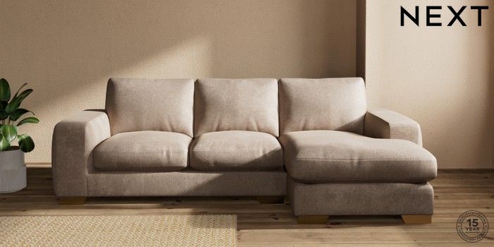 7.2.10 Houghton Deep Relaxed Sit Medium Sofa Chaise - Right Hand Plush Chenille Mid Natural Large Square Angle - Brushed Brass | Made Click here to use our website with more accessibility support, for example screen readers