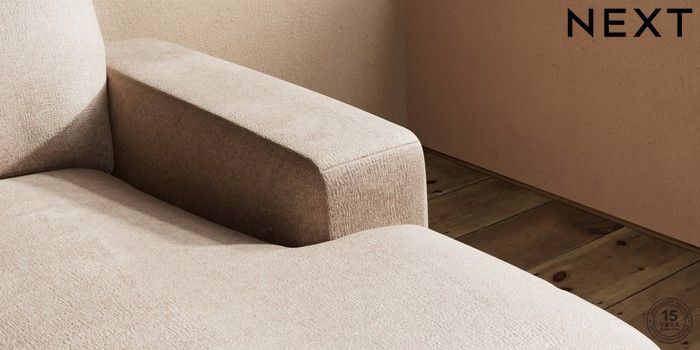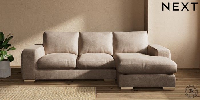 7.2.10 Houghton Deep Relaxed Sit Medium Sofa Chaise - Right Hand Plush Chenille Mid Natural Large Square Angle - Chrome Metal | Made Click here to use our website with more accessibility support, for example screen readers