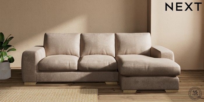 7.2.10 Houghton Deep Relaxed Sit Medium Sofa Chaise - Right Hand Plush Chenille Mid Natural Large Square Angle - Light | Made Click here to use our website with more accessibility support, for example screen readers