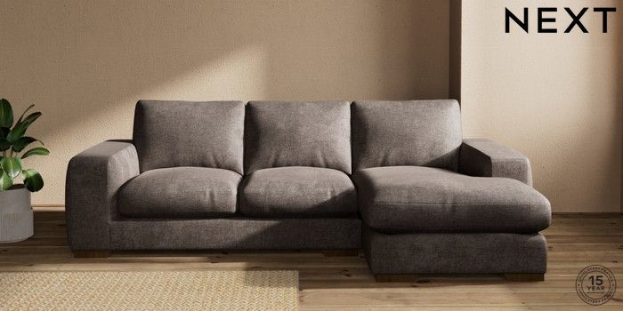7.2.10 Houghton Deep Relaxed Sit Medium Sofa Chaise - Right Hand Plush Chenille Mink Brown Large Square Angle - Mid | Made Click here to use our website with more accessibility support, for example screen readers