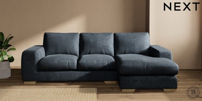 7.2.10 Houghton Deep Relaxed Sit Medium Sofa Chaise - Right Hand Plush Chenille Slate Blue Large Square Angle - Light | Made Click here to use our website with more accessibility support, for example screen readers