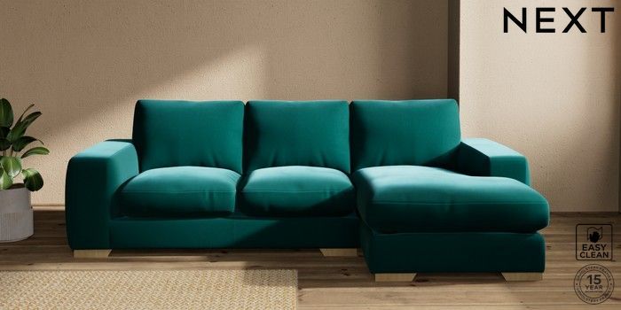 7.2.10 Houghton Deep Relaxed Sit Medium Sofa Chaise - Right Hand Plush Velvet Easy Clean Juniper Green Large Square Angle - Light | Made Click here to use our website with more accessibility support, for example screen readers