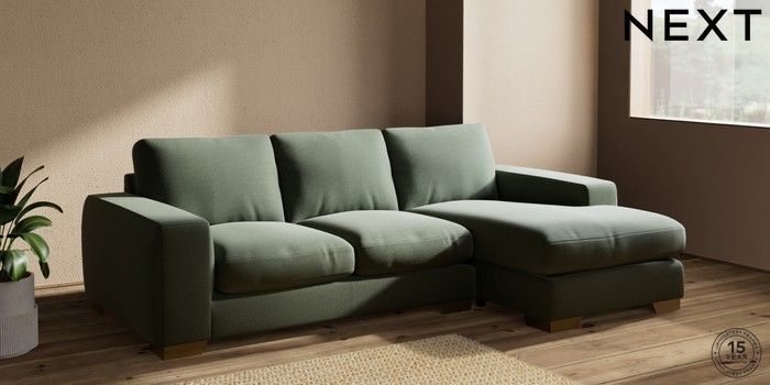 7.2.10 Houghton Deep Relaxed Sit Medium Sofa Chaise - Right Hand Relaxed Linen Look Dark Green Large Square Angle - Brushed Brass | Made Click here to use our website with more accessibility support, for example screen readers