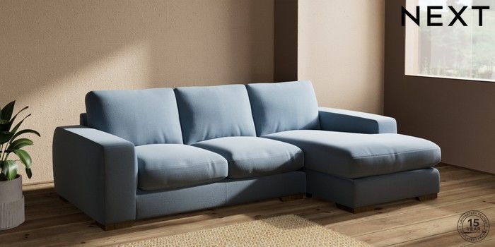 7.2.10 Houghton Deep Relaxed Sit Medium Sofa Chaise - Right Hand Relaxed Linen Look Mid Blue Large Square Angle - Mid | Made Click here to use our website with more accessibility support, for example screen readers