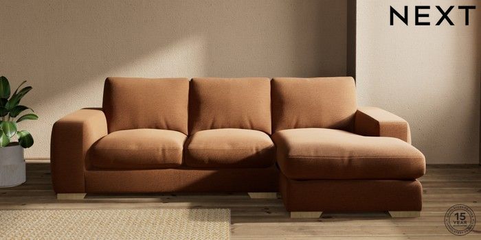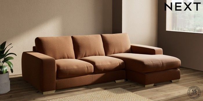 7.2.10 Houghton Deep Relaxed Sit Medium Sofa Chaise - Right Hand Ripple Chenille Mid Rust Brown Large Square Angle - Light | Made Click here to use our website with more accessibility support, for example screen readers