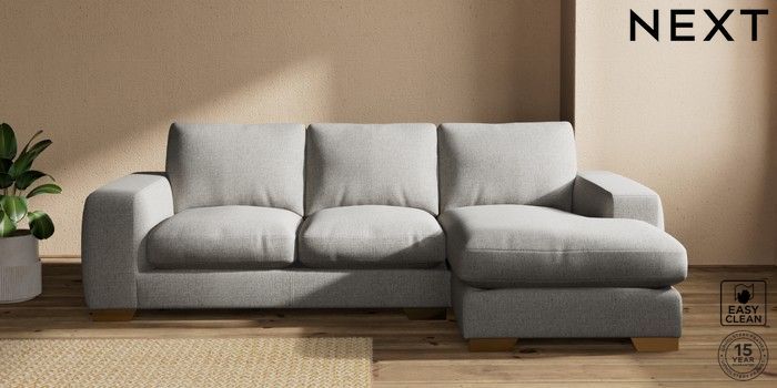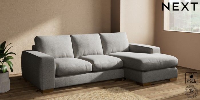7.2.10 Houghton Deep Relaxed Sit Medium Sofa Chaise - Right Hand Woven Chenille Easy Clean Light Grey Large Square Angle - Brushed Brass | Made Click here to use our website with more accessibility support, for example screen readers
