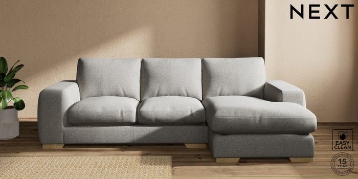 7.2.10 Houghton Deep Relaxed Sit Medium Sofa Chaise - Right Hand Woven Chenille Easy Clean Light Grey Large Square Angle - Light | Made Click here to use our website with more accessibility support, for example screen readers