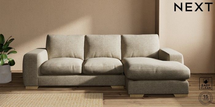 7.2.10 Houghton Deep Relaxed Sit Medium Sofa Chaise - Right Hand Woven Chenille Easy Clean Mid Natural Large Square Angle - Light | Made Click here to use our website with more accessibility support, for example screen readers