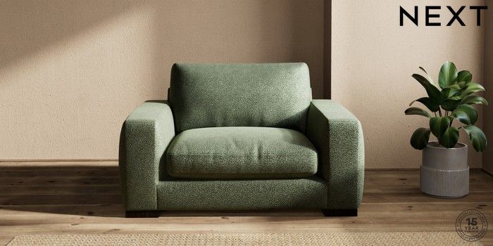 7.2.10 Houghton Deep Relaxed Sit Snuggle Boucle Chenille Dark Moss Green Large Square Angle - Dark | Made Click here to use our website with more accessibility support, for example screen readers
