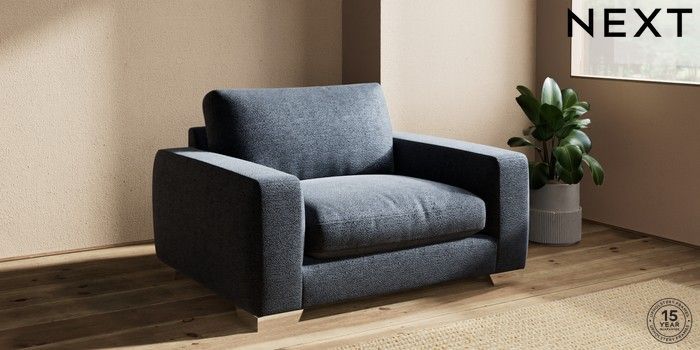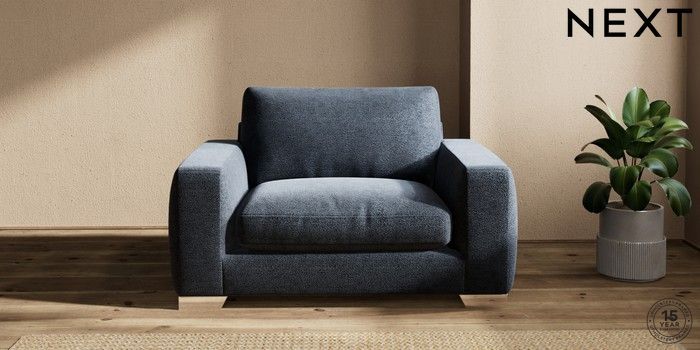 7.2.10 Houghton Deep Relaxed Sit Snuggle Boucle Chenille Dark Slate Blue Large Square Angle - Chrome Metal | Made Click here to use our website with more accessibility support, for example screen readers