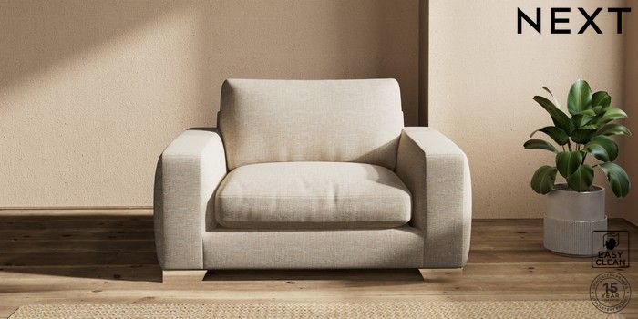 7.2.10 Houghton Deep Relaxed Sit Snuggle Boucle Weave Easy Clean Dark Natural Large Square Angle - Chrome Metal | Made Click here to use our website with more accessibility support, for example screen readers