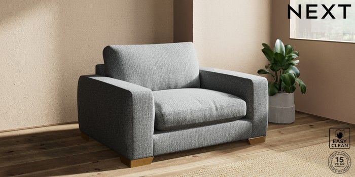 7.2.10 Houghton Deep Relaxed Sit Snuggle Chunky Boucle Easy Clean Mid Grey Large Square Angle - Brushed Brass | Made Click here to use our website with more accessibility support, for example screen readers