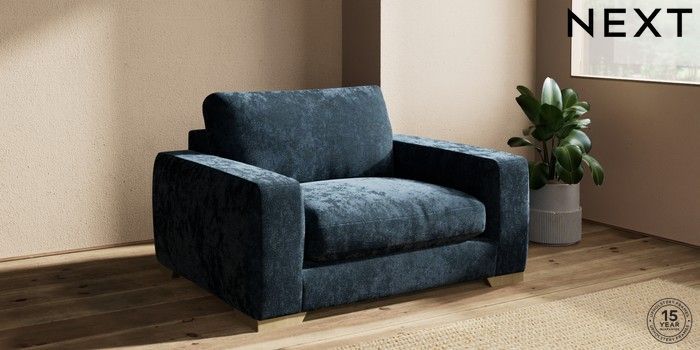 7.2.10 Houghton Deep Relaxed Sit Snuggle Distressed Velour Midnight Blue Large Square Angle - Light | Made Click here to use our website with more accessibility support, for example screen readers
