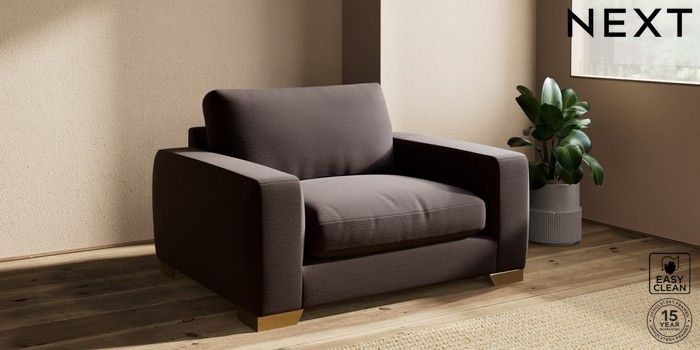 7.2.10 Houghton Deep Relaxed Sit Snuggle Fine Chenille Easy Clean Chocolate Brown Large Square Angle - Brushed Brass | Made Click here to use our website with more accessibility support, for example screen readers