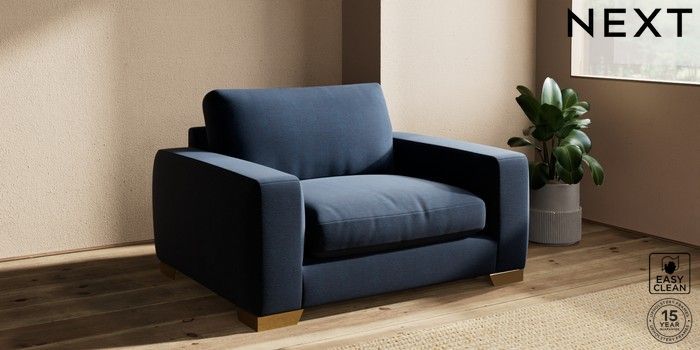 7.2.10 Houghton Deep Relaxed Sit Snuggle Fine Chenille Easy Clean Dark Navy Blue Large Square Angle - Brushed Brass | Made Click here to use our website with more accessibility support, for example screen readers